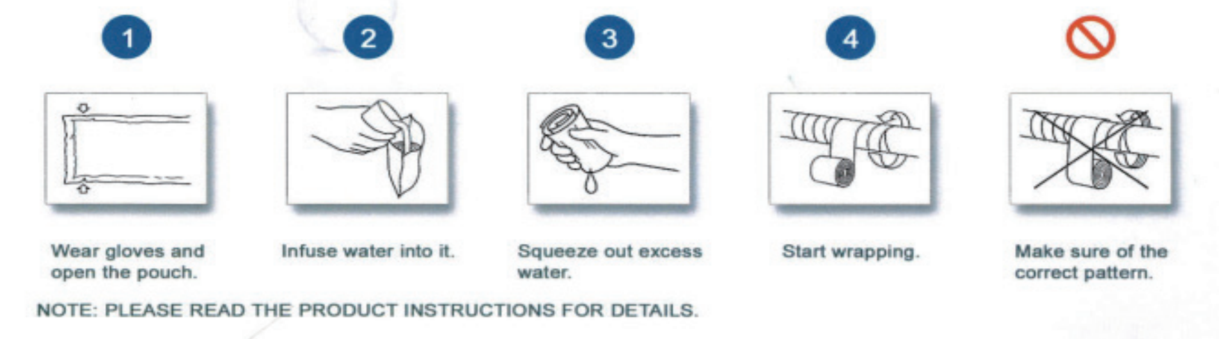 Armor-Wrap is a Flexible fiberglass knit fabric strip, saturated with a curable black urethane resin that starts to cure after adding water. Once wet, the fiber strip becomes tacky and sticks to itself. So it wraps easily around almost any shape or size. It resists moisture, acids, alkalis, ozone, gasoline and high temperatures.
